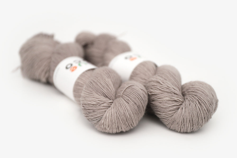 Our Earl Grey colorway is a warm, taupe gray yarn with gentle beige undertones, grounding and cozy like steeped tea. This single-ply merino wool yarn features a beautiful sheen, with a high-twist construction which minimizes pilling, and provides a soft feel for your knitting and crochet projects.