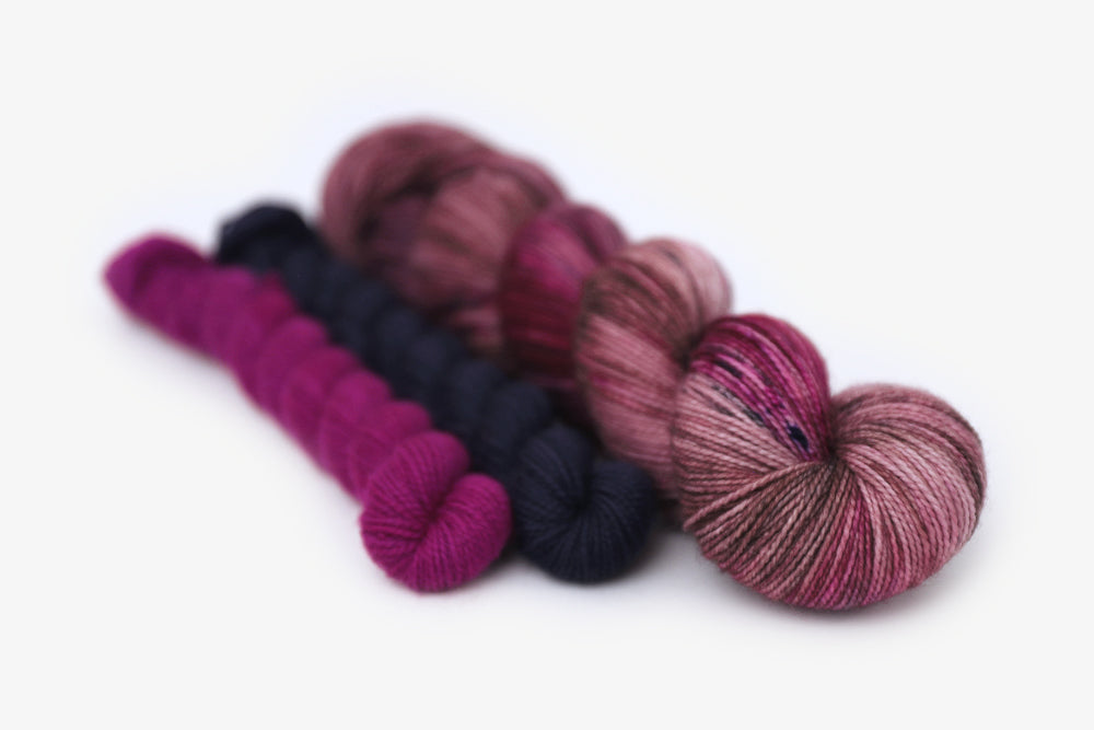 Each sock set comes with (1) 100g full skein + (2) 20g minis