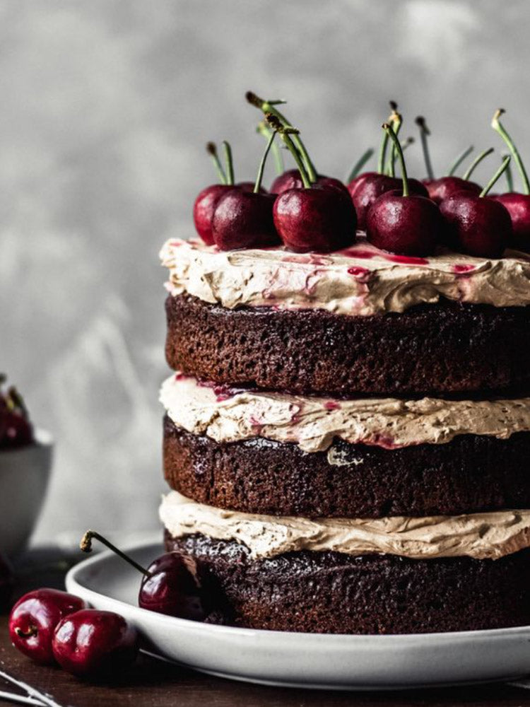 The Black Forest Cake tonal is a delectable blend of warm gray, charcoal, deep cherry, and warm chocolate brown.