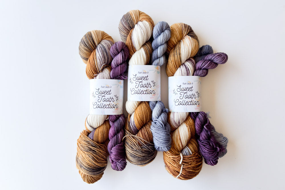 These sock sets are a unique spinoff of our monthly Sweet Tooth series showcasing a sweet treat for each month of the year! Featuring a tonal colorway specific to each dessert and two tonal minis, these sock sets are exclusive to Extravaganza 2025 so make sure to grab one while you can!