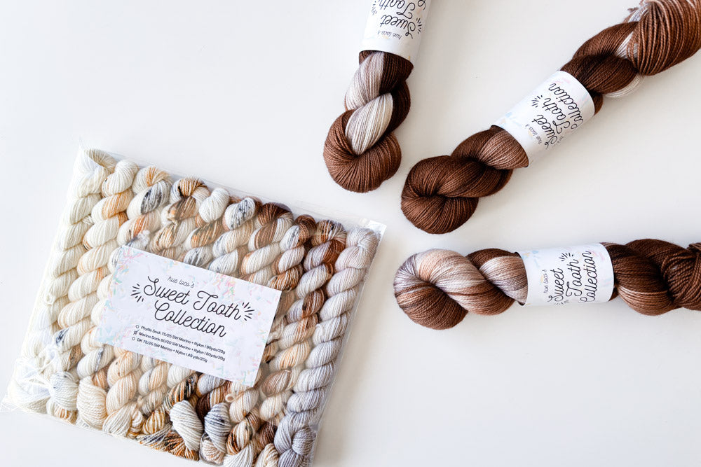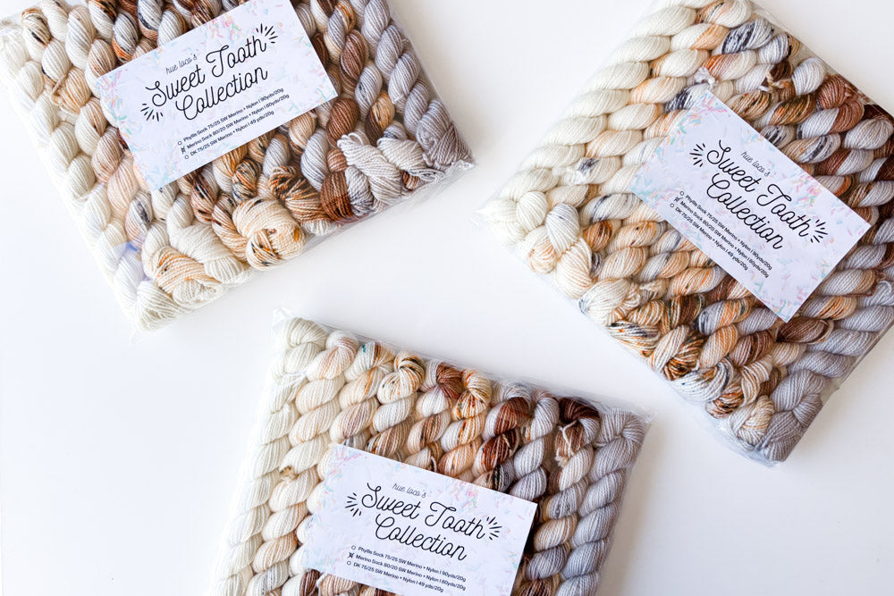 Welcome to our Sweet Tooth Collection, our monthly series for 2025! There will be a new Sweet Tooth Set available the 1st Friday of every month for the whole year! As always, we'll be offering these sets across multiple bases. The Sweet Tooth Collection will be featuring our in-stock semisolids so you'll have a couple options for more yardage and color coordination! Treat Yo' Self on your birthday!