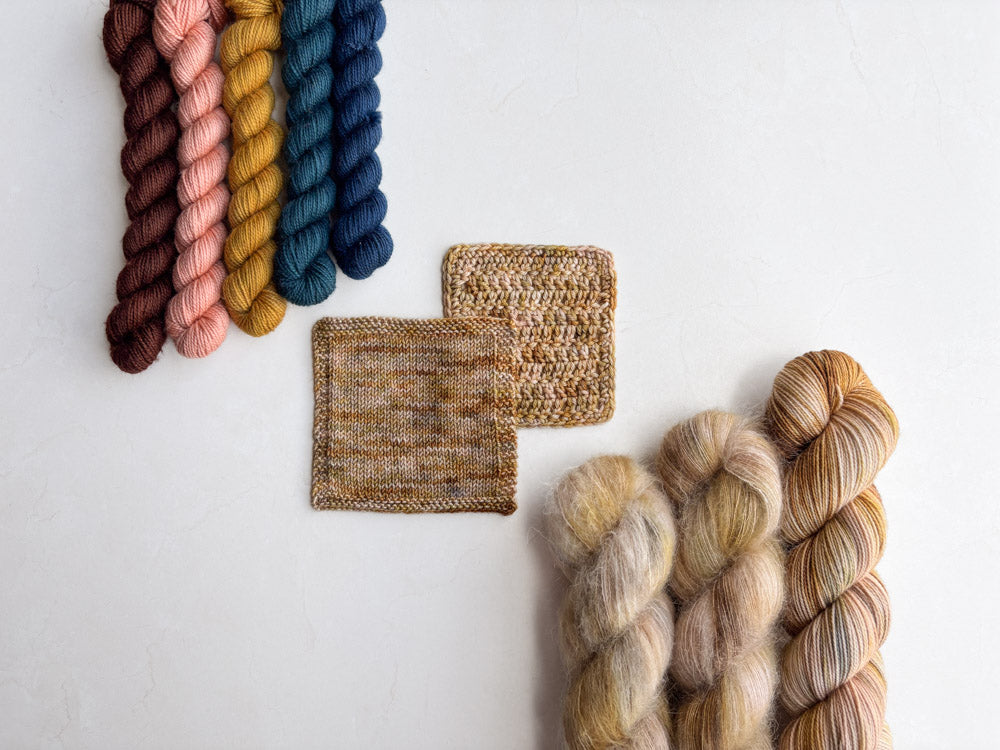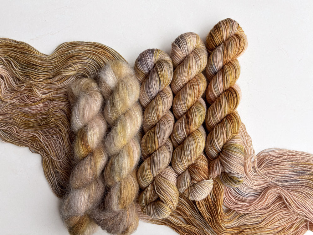Colorway shown in the following order: Mohair, Suri, Phyllis Sock, Merino Sock, DK.