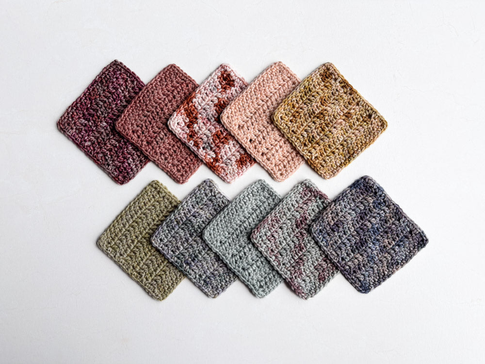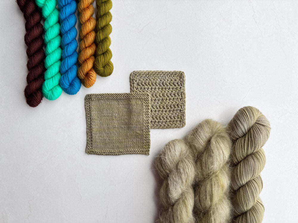 Colorway shown in the following order: Mohair, Suri, Phyllis Sock, Merino Sock, DK.
