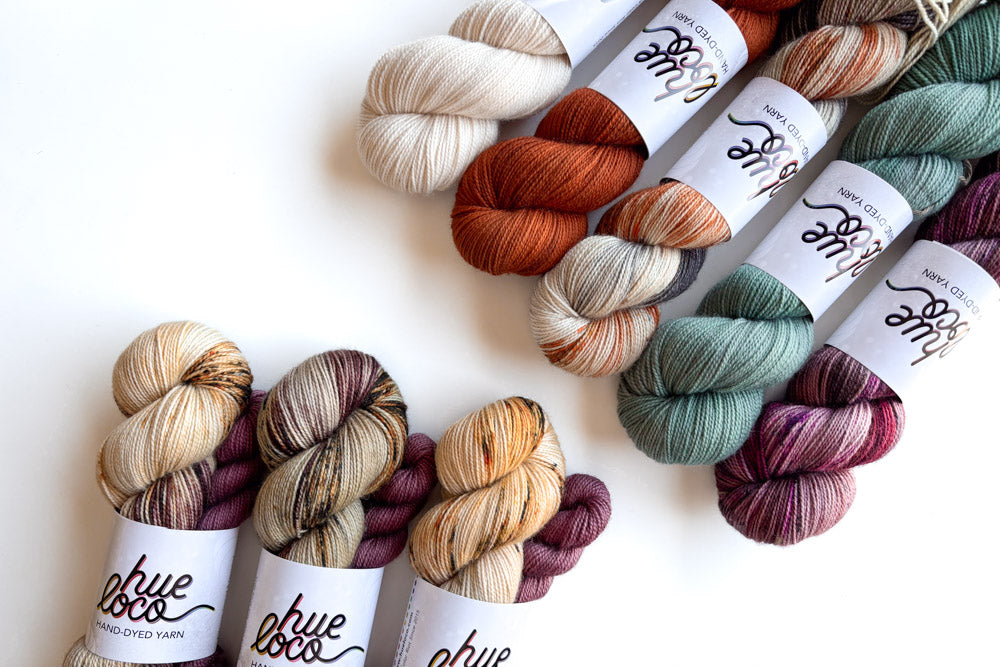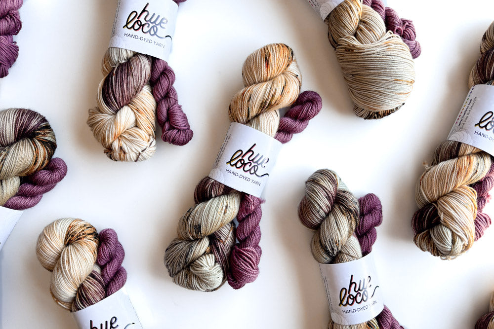 These one pot sock set batches come with a unique specked full skein paired with a complementary mini! Once they're gone, they're gone, so don't miss out!